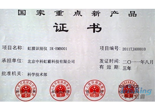 2011年10月份,科技部正式下達(dá)了2011年度國(guó)家有關(guān)科技計(jì)劃項(xiàng)目,我司產(chǎn)品嵌入式虹膜識(shí)別儀列入2011年度國(guó)家重點(diǎn)新產(chǎn)品計(jì)劃并獲得國(guó)家科技部無(wú)償資...