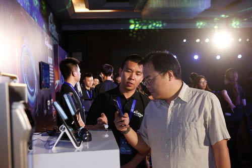 工作人員現(xiàn)場(chǎng)講解智能設(shè)備解決方案